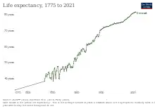 Life expectancy in Denmark has increased from 77.9 years in 2005 to 81.3 years in 2019. Danish women have a higher life expectancy (83.2 years in 2019) than Danish men (79.3 years in 2019).[15]