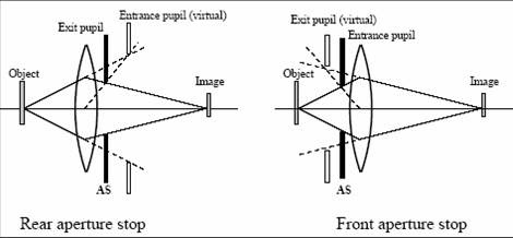 But with wider angles of view and their closer subject distances, the entrance pupil can be much larger than the front element: