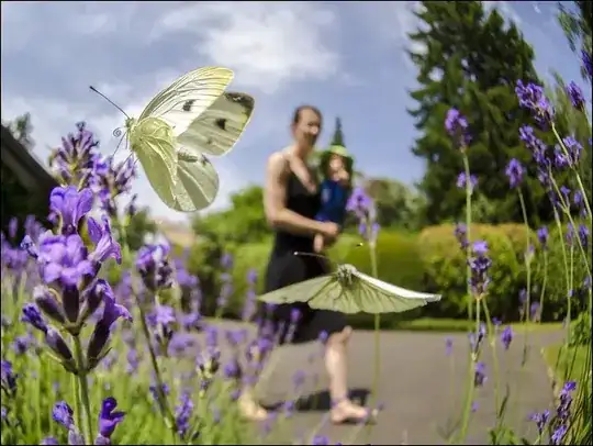 Image shot with a Nikon D7000 + Fish eye 10.5 mm. The butterflies were as close as 2-3 cm maximum from the front lens. No extension tubes. From https://www.flickr.com/photos/tristanromain/16175832981/in/album-72157627481877415/