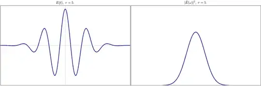 So, how does this look like? Well, here is one sample, with the carrier-envelope phase set to zero, of how the spectrum broadens as the time-domain pulse length shrinks,
