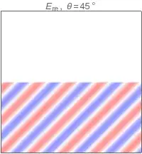 So, what happens exactly at the critical angle? This is where it gets fun: the critical angle is the point strictly between positive and imaginary in $k_{z,\mathrm{tr}}$, and that turns out to be exactly zero: that is, the transmitted field has a zero $k_z$ component, $$ \mathbf E_\mathrm{tr}(\mathbf r,t) = \mathrm{Re}\mathopen{}\left( \mathbf E_{0,\mathrm{tr}} e^{i(k_x x- \omega t)}\right)\mathclose{}, $$ and this means that it neither oscillates nor decays away from the boundary, and it fills all of the $n_2$ space with a plane wave propagating strictly parallel to the boundary between the media: