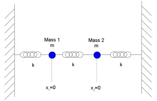 $$ m \ddot{x_1} = -2kx_1 + kx_2 $$