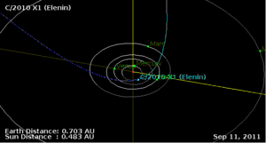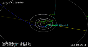 - ↑ C/2010 X1 (Elenin) (Updated on January 7, 2012) Seiichi Yoshida's Home Page.