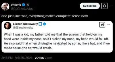 Note that most of these blog posts don't even mention Yudkowsky, much less quote mine him. But still, he wants his own header on top of every single blog post.