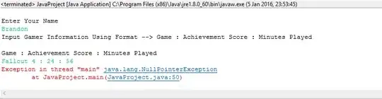 "Exception in thread "main" java.lang.NullPointerException at JavaProject.main(JavaProject.java:50)"