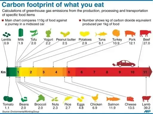 The chart is misleading since it compares carbon imprint by mass instead of a measure of how much a human needs to survive.