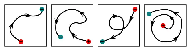 Given a simple path that starts at point and ends at point , the total displacement generated by is . This displacement is solely dependent on the endpoints as indicated by the top image to the right.