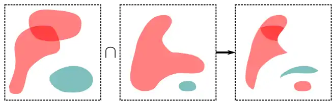 - Given two multi-volumes denoted by scalar fields and , then the inwards-oriented surface of the intersection is: .