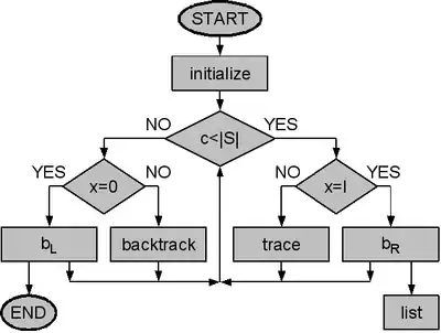 • when backtracking reaches the left boundary, the tracing restarts at the next valid node till all nodes are exhausted.