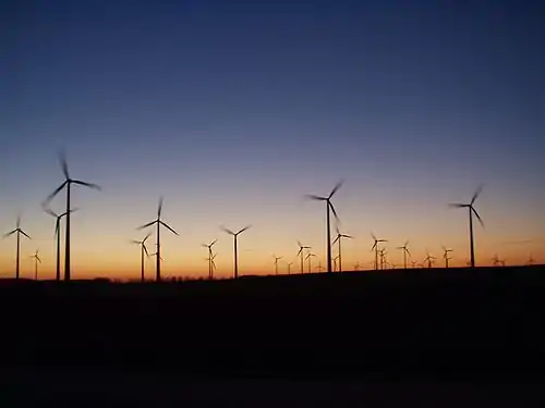 Figure 5.9: Wind turbines like the ones shown above turn wind into electricity without creating pollution.
