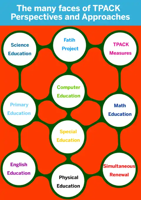 'The Many Faces of TPACK: Perspectives and Approaches" is a Wikibook created as part of the Research and Practice on Technology in Teacher Education Course (EDS 536) taught at Middle East Technical University in Spring 2013. This collaborative work between the course instructor/editor and the students/authors intends to present the approaches and perspectives on the Technological Pedagogical Content Knowledge (TPACK) framework which provided a theoretical foundation to the course activities and experiences. All the content in this book as well as the format such as the cover, title, and the table of contents were created by the course participants. Special thanks goes to Hatice Çilsalar and Mustafa Şat who contributed to the design of the wikibook pages and the cover.