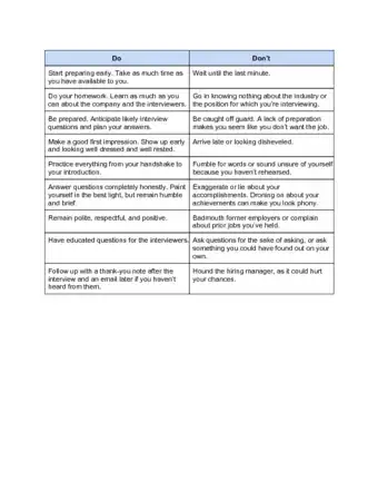 • Do not oversell yourself, or artificially inflate your accomplishments or ability. This could backfire if you actually get the job and are unable to fulfill your duties.