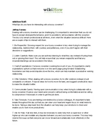 1. Being calm and nice will lead to a more productive workplace environment. It can be tough to keep your emotions in check when your coworker bosses you around. If you find yourself getting frustrated or worked up, take a few deep breaths and count to 10 before responding.[11]