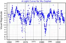 - 1 2 Brelstaff, T.; Lloyd, C.; Markham, T.; McAdam, D. (June 1997). "The periods of MU Cephei". Journal of the British Astronomical Association. 107 (3): 135–140. Bibcode:1997JBAA..107..135B.