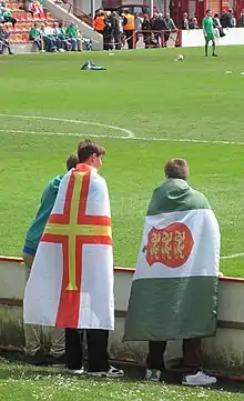 - ↑ "Guernsey flag". The Sarnian. 31 May 2017. Retrieved 3 February 2018.
