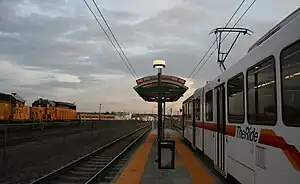 10th & Osage station (sometimes stylized as 10th•Osage) is a RTD light rail station in Denver, Colorado, United States. Operating as part of the D, E and H Lines, the station was opened on October 8, 1994, and is operated by the Regional Transportation District.[3][4] This is the northernmost station served by all trains that pass through the I-25 & Broadway station.[5]