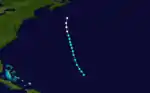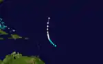 From September 18 to the 21st, a hurricane existed in the tropical Atlantic Ocean to the northeast of the Lesser Antilles, peaking at 80 mph (129 km/h) before never being seen again.[2]
