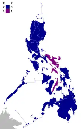 - ↑ The Nacionalista Party won 8 seats: 5 seats under the Colectivistas and 3 seats under the Unipersonalistas. Following the election, the Nacionalista Party has a total of 18 seats: 12 seats under the Colectivistas and 6 seats under the Unipersonalistas.