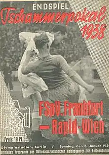 The 1938 Tschammerpokal Final decided the winner of the 1938 Tschammerpokal, the 4th season of Germany's knockout football cup competition. It was played on 8 January 1939 at the Olympiastadion in Berlin.[2] Rapid Wien won the match 3–1 against FSV Frankfurt, to claim their 1st cup title.