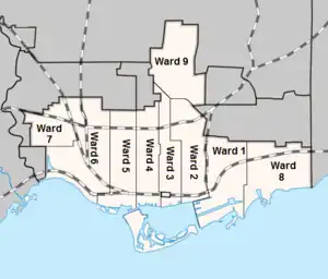 A Metropolitan Toronto Council had come into being on April 15, 1953 and was made up of the Metro Chairman, Frederick Gardiner, who had been appointed by the province, the Mayor of Toronto, the City of Toronto's two most senior Controllers, nine senior aldermen from each of the City of Toronto (the top finisher in each ward), and the twelve suburban mayors and reeves.[2]