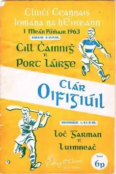 The 1963 All-Ireland Senior Hurling Championship Final was the 76th All-Ireland Final and the culmination of the 1963 All-Ireland Senior Hurling Championship, an inter-county hurling tournament for the top teams in Ireland. The match was held at Croke Park, Dublin, on 1 September 1963, between Kilkenny and Waterford. Waterford, the Munster champions, lost to their Leinster opponents on a score line of 4-17 to 6-8.