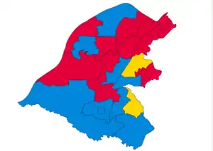 | Conservative Party | 32,328 (41.9%) | 9 (40.9%) | 9 / 22 |