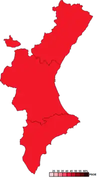 ![]() Constituency results map for the Corts Valencianes | ||||||||||||||||||||||||||||||||||||||||||||||||||||||||||||||||||||||||||||||||||