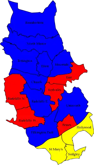 17 of the 51 seats on Bury Metropolitan Borough Council 26 seats needed for a majority | |||||||||||||||||||||||||||||||||