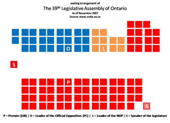 Seat distribution and arrangement in the Ontario Legislative Assembly.