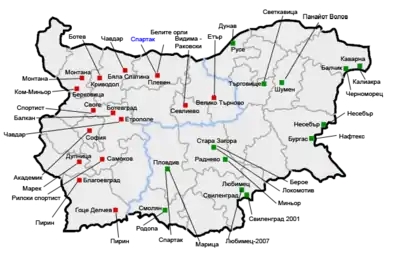 | Relegated | Chavdar Byala Slatina Spartak Pleven Naftex Lokomotiv Stara Zagora Maritsa |