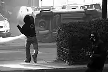 ![]() Clockwise, from top left: riot police face protesters; police move in to contain rioting civilians; a protester defies police; burned-out vans; an abandoned barricade; and protesters retreat from tear gas | |