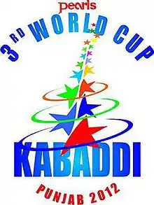 2012 Kabaddi World Cup was the third edition of the circle style Kabaddi World Cup, organised by the Government of Punjab. It was played in Punjab, India in various cities of the province from 1 to 15 December 2012 with teams from 16 countries. The opening ceremony of the tournament was held in Bathinda and the closing ceremony in Ludhiana.[1]