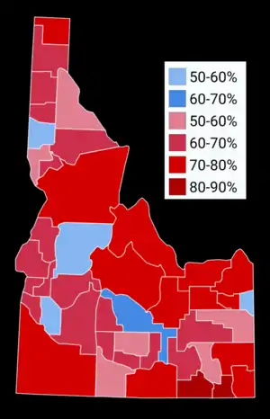 | Twin Falls | 10,527 | 57.04% | 7,927 | 42.96% | 2,600 | 14.08% | 18,454 |