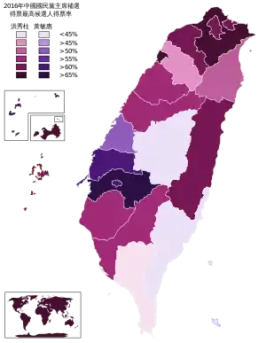 | Hung Hsiu-chu | Kuomintang | 78,829 | 56.48 | |