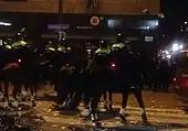 At the time, the Turkish Minister of Family and Social Policies, Fatma Betül Sayan Kaya, was touring Germany.[7] A visit to the Dutch town of Hengelo, close to the German border, had already been scheduled.[7] On 11 March, the Dutch General Intelligence and Security Service received information that Kaya would try to reach Rotterdam by car.[7] She could freely cross the border because of the Schengen Agreement.[8] A crisis centre was established on the twenty-third floor of the Rotterdam World Port Center to coordinate police actions.[7] Earlier, the Turkish consul in Rotterdam had indicated to the Mayor of Rotterdam, Ahmed Aboutaleb, that there were no plans for such a visit.[7] It now proved impossible to contact the consul, which gave Aboutaleb the conviction that the consul knew of Kaya's attempt.[7] A motorcade was intercepted but the car with the minister managed to drive away.[7] It reached a small yard at the rear of the Turkish consulate.[7] The Dutch police stopped Betül Sayan Kaya's entourage just metres from the Turkish consulate building.[11] About twenty police officers, forming a special forces unit, the Dienst Speciale Interventies, masked and equipped with body armour and automatic weapons, arrested ten members of Kaya's bodyguard, on suspicion of illegally carrying firearms.[7] A German source had indicated they had obtained a German weapons permit.[8] No arms were discovered.[7] Two other men were also arrested, who later proved to be the Deventer Turkish consul and the chargé d'affaires of the Turkish embassy.[8] They in principle enjoyed diplomatic immunity.[8] The twelve arrested men were detained for two hours and their passports were seized.[8] A stand-off ensued for several hours in which the Turkish minister refused to leave the car.[7] Just after midnight, a special heavy tow truck, a lift flatbed, was driven into the yard and prepared to vertically hoist the 3.5 tonne car onto the flatbed, with the minister still in it, to transport her back to Germany.[7] The minister now left the car and demanded entrance to the consulate invoking the Vienna Convention on Diplomatic Relations.[7] The Dutch police had orders to arrest the minister if necessary.[12] Ultimately, she gave in to the police demands to leave the country. At the time, many news sources assumed that she had been declared persona non grata.[13] She was, loudly protesting, taken to another car, a black armoured Mercedes,[8] by masked Dutch police officers who accompanied her to a police station at Nijmegen near the Dutch–German border.[7] Her passport was seized.[8] She was not allowed to leave the station for one and a half hours, while being reunited with the ten bodyguards.[7][8] She returned to Germany under German escort.[7] Sporadic rioting occurred among the about a thousand pro-Erdoğan protesters who had come to the Turkish consulate. They were met by Dutch riot police, who arrested twelve people for violent assault and not following police instructions.[14][15][16] Kaya's passport was returned on 12 March, 18:00, to the Turkish consul.[8] In April 2017, Kaya's lawyer said they would file a complaint against the Dutch government at court claiming that her expulsion from the Netherlands was illegal because she was not given a written statement of the reasons for the expulsion.[17] However, on 2 May the case was dropped when it transpired that Kaya had never been formally declared persona non grata and that from a judicial point of view she had left the Netherlands voluntarily.[18]