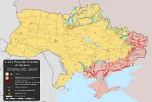 The Russian-led militants of the Donetsk People's Republic and the Luhansk People's Republic declared independence from Ukraine in 2014.[33][34] Pro-Russian separatists held discredited independence referendums in May 2014.[35] After invading Ukraine in February 2022, Russia started preparations to hold referendums in occupied parts of Donetsk and Luhansk.[36]