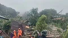 Riau Islands provincial government dispatched 25 police personnel to the island for initial relief efforts.[8] Regional Disaster Mitigation Agency of Natuna Regency and 318th Natuna Military District also dispatched two ships. The relief effort is hampered due to the heavy rains which forced the search efforts to halt on several occasions as well as the islands' remote location which takes 5 hours using a boat normally during calm weather from the capital of the regency, Ranai.[9] A search and rescue team was dispatched from Ranai with a total of 36 people.[10] The landslides resulted in total blackout of electricity and telecommunication connection to the island, making contact with the outside world difficult.[11] The landslides also damaged major roads across the island.[12]