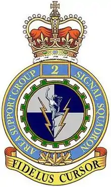 2 Area Support Group Signal Squadron (2 ASG Sig Sqn) was a Regular Force Army unit within the Canadian Forces. The squadron was responsible for delivering secure and non-secure communication and information systems across Land Force Central Area (LFCA). The squadron's parent formation was 2 Area Support Group (2 ASG).[1] Although an Army unit, for service delivery the squadron aligned itself to an ITIL framework for business processes and a common lexicon with industry partners.