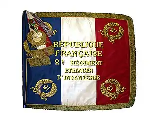 14. 1 2 3 "Official Website of the 2nd Foreign Infantry Regiment, Historique du 2e REI, Le drapeau du 2ème REI". Archived from the original on 2015-07-03. Retrieved 2015-07-26.