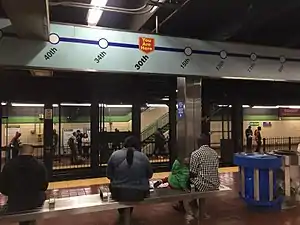 | Westbound | ← Market–Frankford Line toward 69th Street T.C. (34th Street) | |