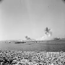 Immediately after the Battle of Alamein (23 October–4 November),[77] 69th HAA Rgt moved up behind the advancing Eighth Army to El Alamein, then on to Mersa Matruh, arriving on 11 November. Here it controlled 192/69 and 261/94 HAA Btys sited to defend the harbour, with 105/40, 165/55 and 166/56 LAA Btys defending the harbour and Smuggler's Cove. In addition, 8 x 6-pounder anti-tank guns of 296 A/T Bty provided coast defence while 204 Coast Defence Bty emplaced its guns. Other units, including 199 and 200 HAA Btys, and two troops of 390/27 S/L Bty, came and went as the army pushed on to Sollum, Tobruk and beyond.[73]