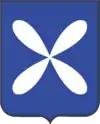 - Shield: Azure, a cross pendal saltirewise Argent.