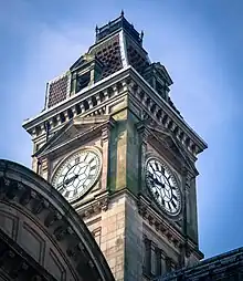 Shortly after giving lectures on chronology in 1842 he provided an accurate display of local time based on astronomical measurements on a public clock in front of the Philosophical Institution in Cannon Street from which the church clocks were set. It was eventually synchronised to Greenwich Mean Time by electrical telegraph when the railway timetable became important. Later a number of clocks around Birmingham were linked by wire. The clock was transferred to the BMI when the BPI closed down in 1852. The Crystal Fountain which was the centrepiece of the Great Exhibition of 1851 was his creation and in 1854 he produced a 2-tier, 20-feet-high candelabrum for the Exhibition of Industrial Arts and Manufacturers.[1] In 1883, he gave a clock and bells for the tower of the new Art Gallery, which was constructed in 1885. This clock, nicknamed Big Brum, subsequently acted as the town's timepiece, replacing the expensive network of clocks wired around the town.