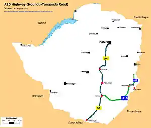 The A10 Highway is a primary road that runs from Ngundu in south Masvingo Province to Tanganda through the Mutare-Masvingo Highway in Manicaland Province.[1][2]