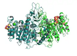 Alkaline phosphatase, placental type is a membrane-bound glycosylated dimeric enzyme, also referred to as the heat-stable form, that is expressed primarily in the placenta, although it is closely related to the intestinal form of the enzyme as well as to the placental-like form.[7]