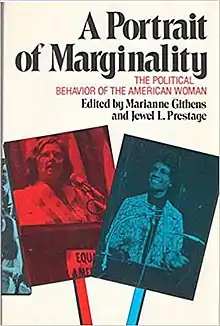 A Portrait of Marginality is a 1977 book edited by Marianne Githens and Jewel Prestage on the political behavior of American women. It is an anthology of 22 papers on women's participation or lack of it in American politics. It includes a section specifically on African American women in politics.