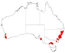 The species is endemic to coastal areas of New South Wales. Its native range extends from the Budawang Range in the south as afar as the Bellinger River in the north.[4] It is sometimes escaping from gardens and is considered as a weed in wetter Warren and Jarrah Forest regions in the South West of Western Australia where it grows in loamy lateritic soils.[6] It has also become naturalised in other parts of Australia including Queensland and parts of Victoria.[4] The habitat is near rainforest and wet sclerophyll forest in various situations. An attractive plant with delicate foliage, it is sometimes seen in cultivation. Its timber is attractive, close-grained, strong and hard, and is suitable for carpentry and turning.
