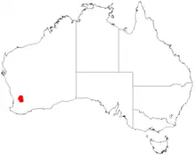 It is found in a small are between Cunderdin, Quairading and Tammin in gravelly sand or sandy clay soils.[2] It is found along road verges and in shrubland communities over laterite or granite. Associated species include different species of Allocasuarina, Acacia, Grevillea, Actinostrobus and Hakea.[5]