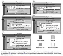 Hypothesized evolutionary relationships of A. geoffreyi among Archosauria, Suchia, Pseudosuchia, and Aetosauriformes