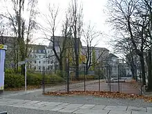 In the 1870s and 1880s, the character of the street was greatly changed with the building of tenements. The Ackerhöfe at numbers 14–15, unusual in occupying two of the original land parcels, are a restored complex of tenements built in four phases between 1867 and 1911, the last phase representing an attempt at housing reform.[2] The most notorious tenement in Berlin, Meyers Hof, was at number 132.[4][5] One of the original covered markets of Berlin, now known as the Ackerhalle, was built on the corner with Invalidenstraße in 1886–88 and is still in use; it is the only one that retains its original façade.[6]